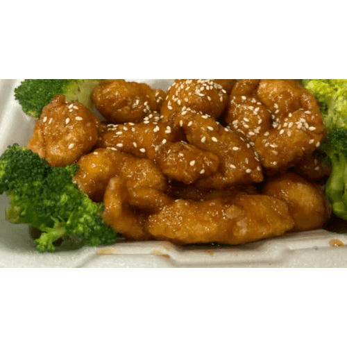 Lightly battered chicken glazed with house lemon sauce. No veggies, just delicious lemony chicken. Includes: 1 crab rangoon, fried or white rice egg/spring roll or soup.