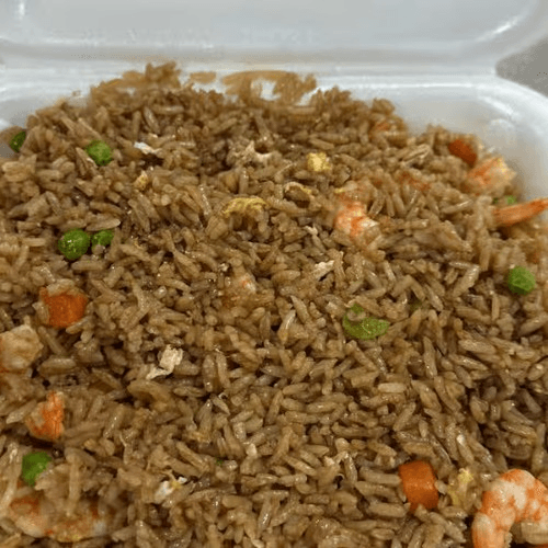 Shell on shrimp stir-fry. Nothing by shrimp. It’s finger-licking good. Includes: 1 crab rangoon, fried or white rice, egg/spring roll or soup.