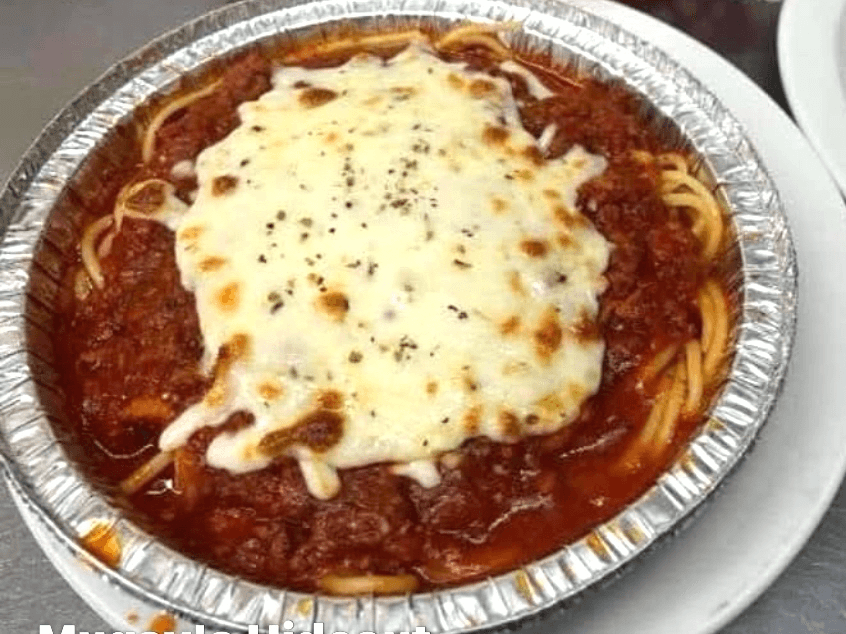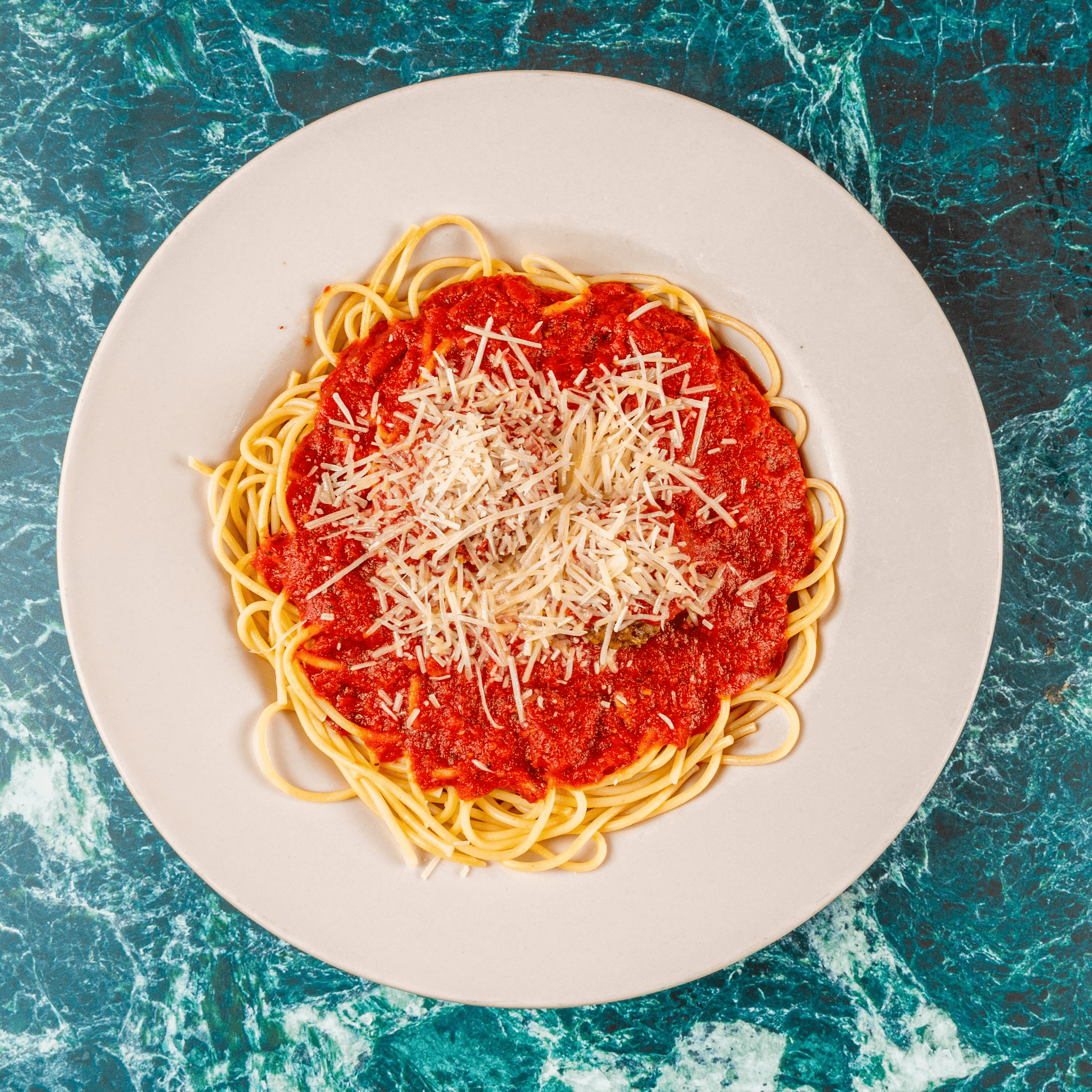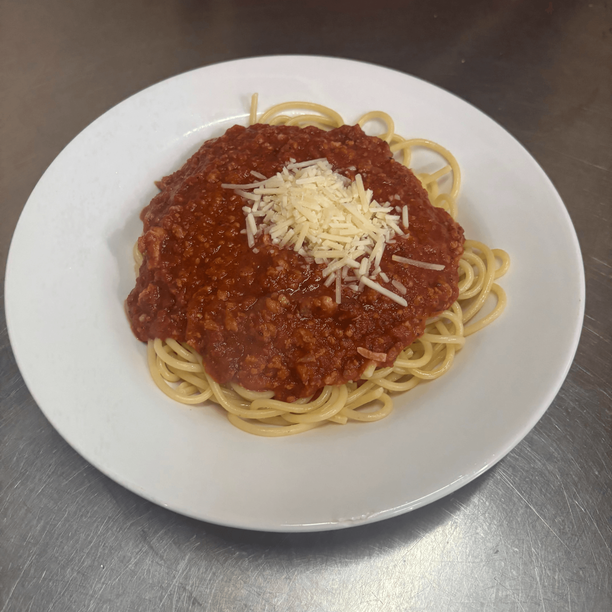Spaghetti served with our homemade meat sauce and topped with parmesan