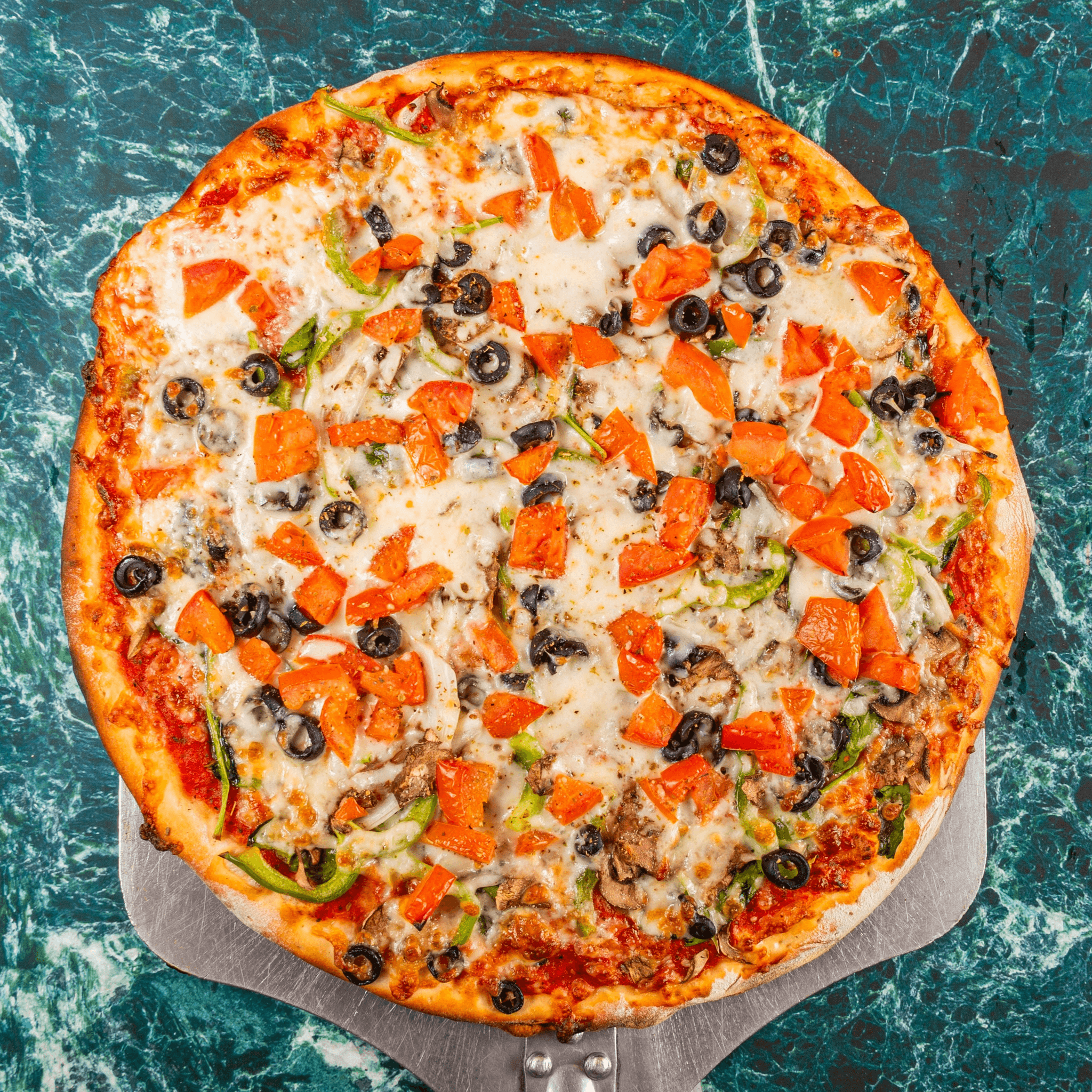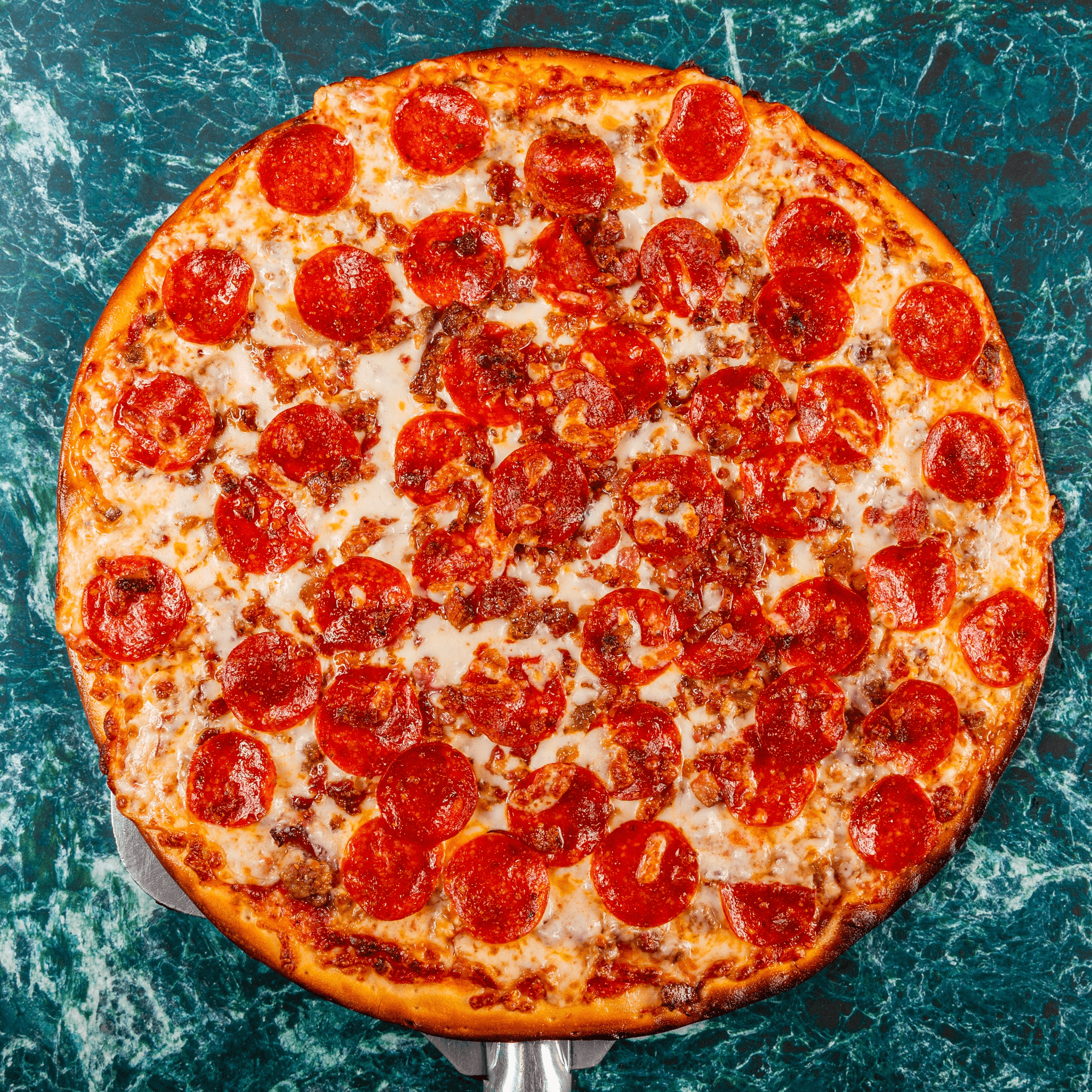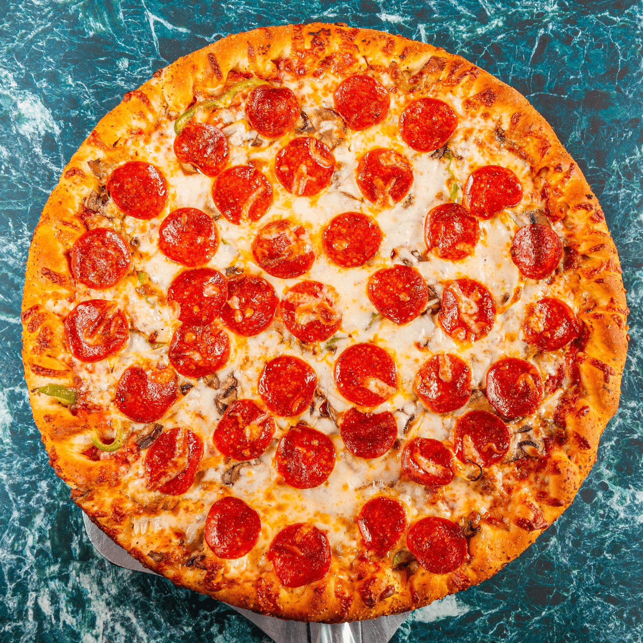 Italian sausage, pepperoni, green peppers, onions, and mushrooms