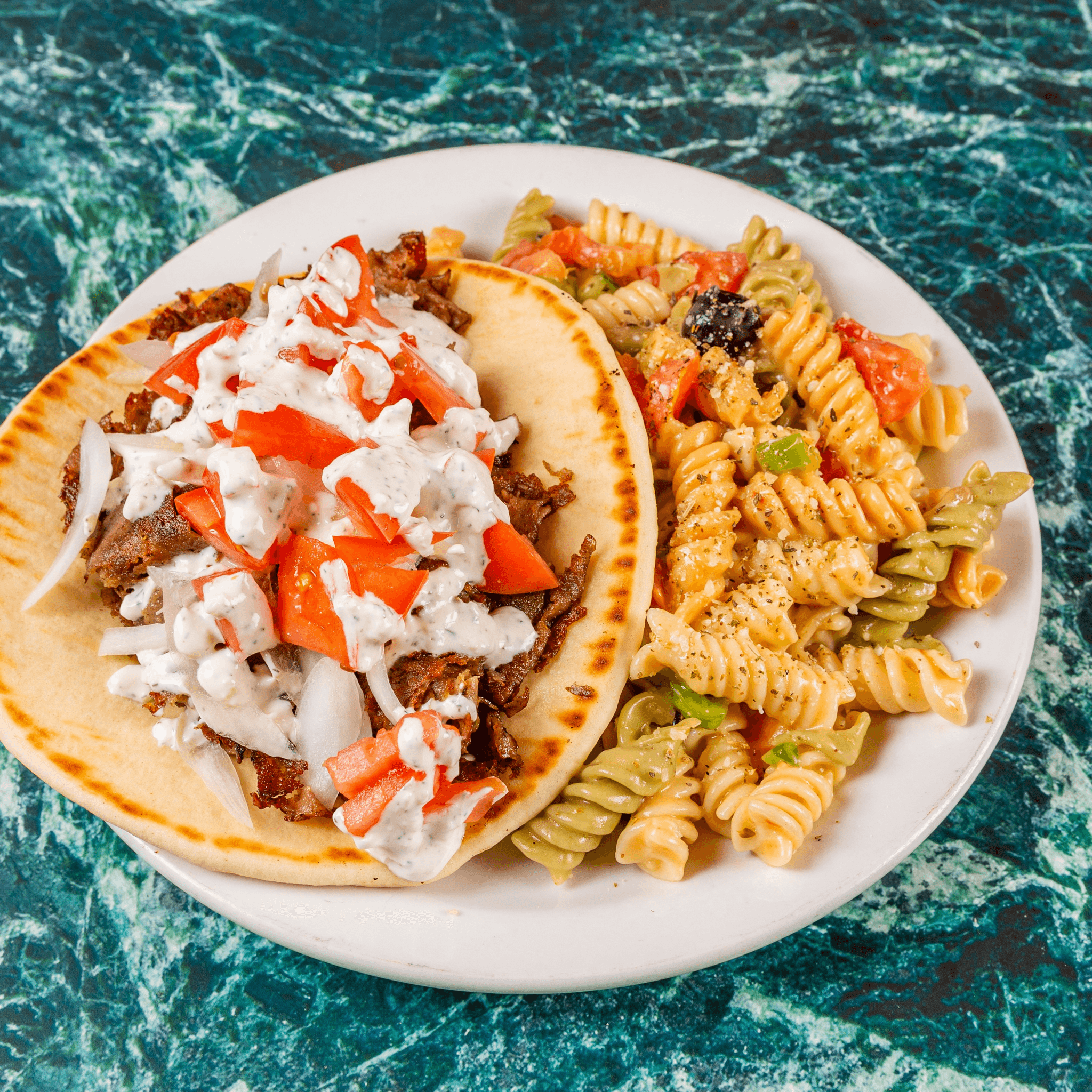 Authentic chicago-style gyros served on a pita with onion, tomato, and our homemade tzatziki sauce