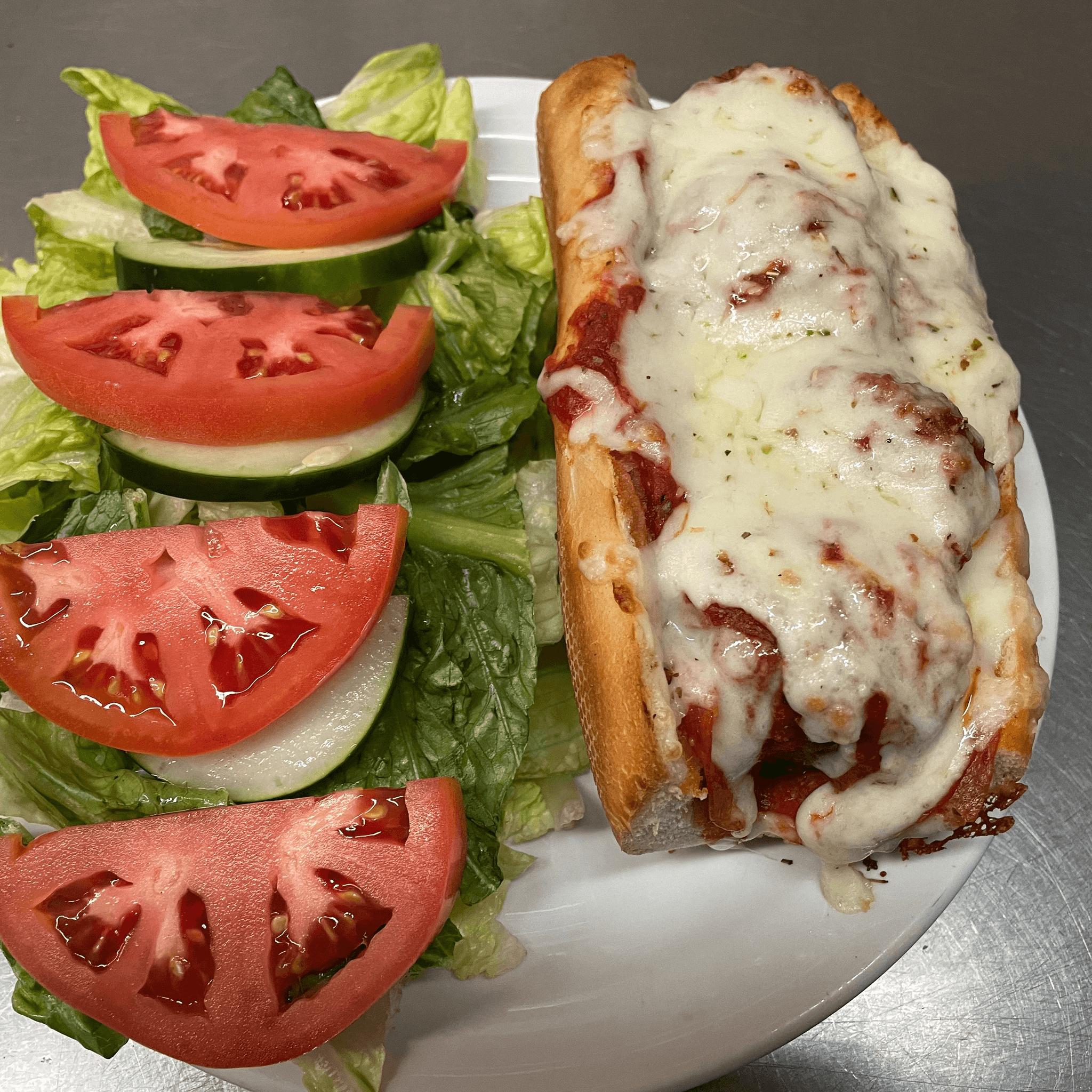 Italian-seasoned meatballs cooked in our homemade marinara, topped with mozzarella, and served on a french roll